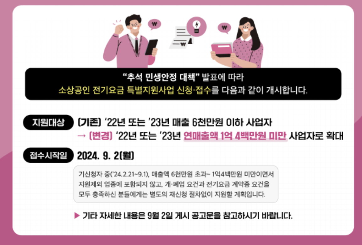 - 신청 링크: 소상공인 전기요금 특별지원.kr