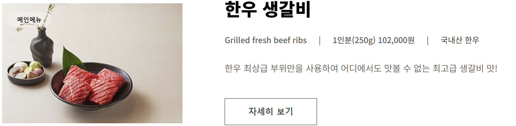 - 한우 생갈비: 최고급 한우 갈비를 사용하는 메뉴로, 쫄깃한 식감과 풍부한 육즙이 매력적이에요.