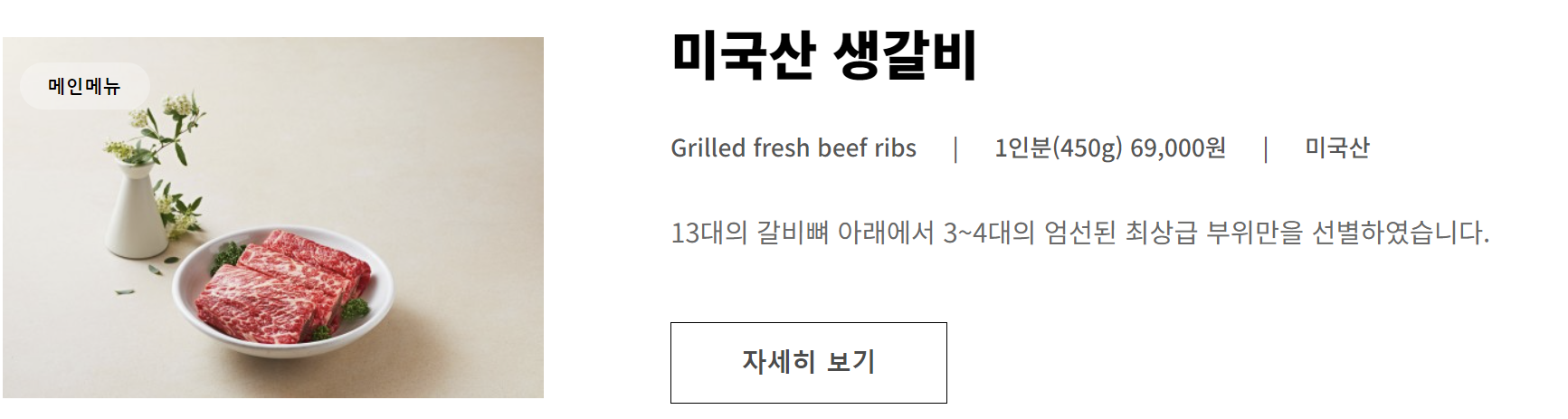 - 수입 생갈비: 저렴한 가격에 양질의 고기를 마음껏 즐길 수 있어요. 양도 푸짐해 가성비가 매우 뛰어납니다.