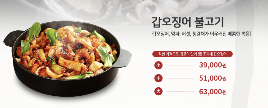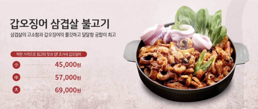 원조 메인 메뉴가 갑오징어 불고기와 파전이며, 수년전부터 갑오징어와 삼겹살 그리고 갑오징어와 닭갈비살을 섞어 볶은 메뉴도 인기를 얻고 있는데 저희 가족은 무조건 원조 갑오징어 불고기와 파전입니다.