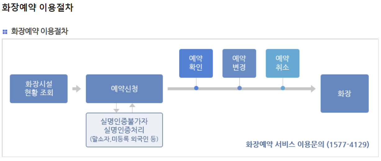 - 온라인 예약: 보건복지부에서 운영하는 e하늘 장사정보시스템을 통해 온라인 예약이 가능합니다. 화장 예약은 사망 후 24시간이 경과된 후 진행할 수 있으며, 5일 전부터 예약이 가능합니다.