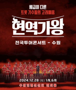 | 2024 현역가왕 전국투어 콘서트 - 제주도 공연일정 및 예매 안내 (7) | 2024.10.08 |