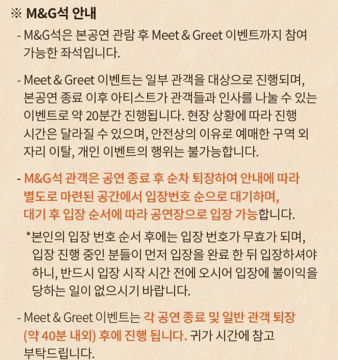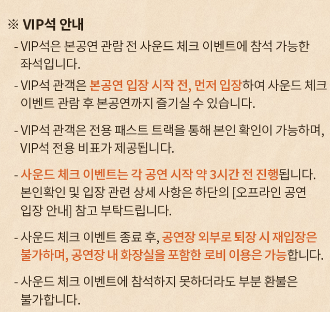 - 출입 시간: 공연 시작 1시간 전부터 입장 가능합니다.