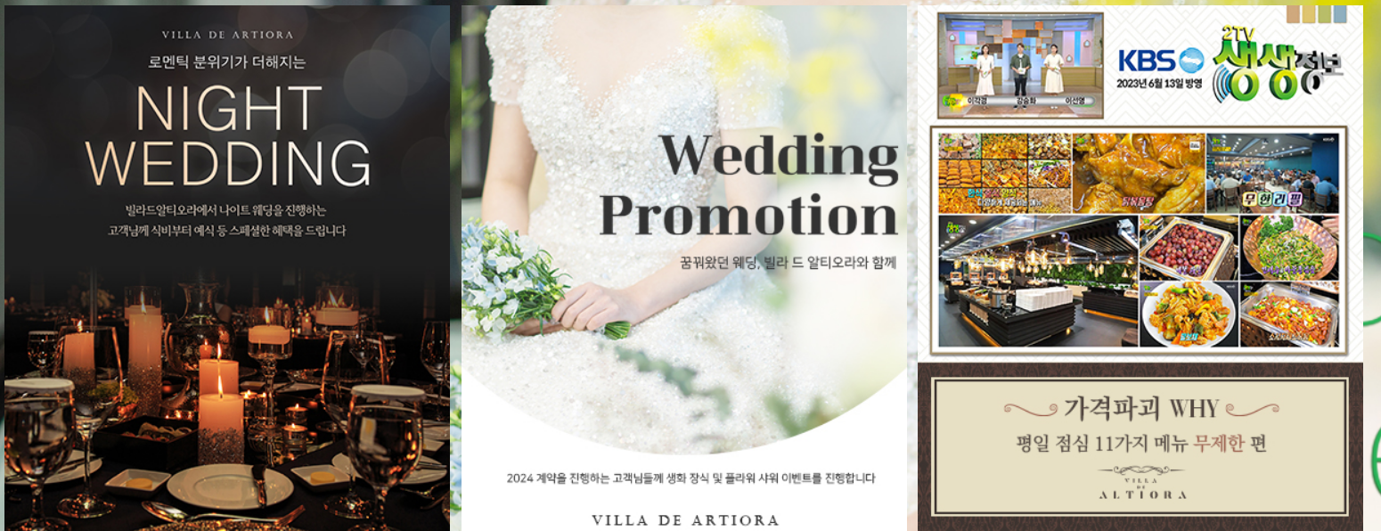 빌라드알티오라의 가장 큰 특징은 바로 그 독특한 인테리어와 분위기예요. 화이트 톤의 깔끔한 디자인과 그린 식물들이 어우러져 있어, 사진 찍기에도 정말 좋은 장소랍니다. 특히, 하얀 버진로드와 아름다운 조명은 결혼식의 로맨틱한 분위기를 한층 더해줘요. 그리고 이곳은 주차 공간도 넉넉해서 하객들이 편하게 오실 수 있다는 점도 큰 장점이에요.