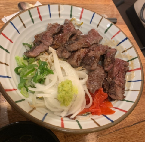 300g의 스테이크가 있는 세트 메튜와 큐브 덮밥 도 역시 맛있었어요.