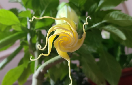 ‘블랙 다투라’는 광택이 나는 새까만 줄기를 가지고 있고 꽃이 땅을 향하고 있는 ‘천사의 나팔’등이 개량종의 일종입니다.