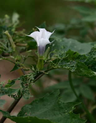 꽃은 6-9월에 흰색의 꽃이 밤에 피는데 나팔과 모양이 비슷해서 종종 나팔꽃과 혼동되기도 합니다.