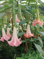 ‘블랙 다투라’는 광택이 나는 새까만 줄기를 가지고 있고 꽃이 땅을 향하고 있는 ‘천사의 나팔’등이 개량종의 일종입니다.
